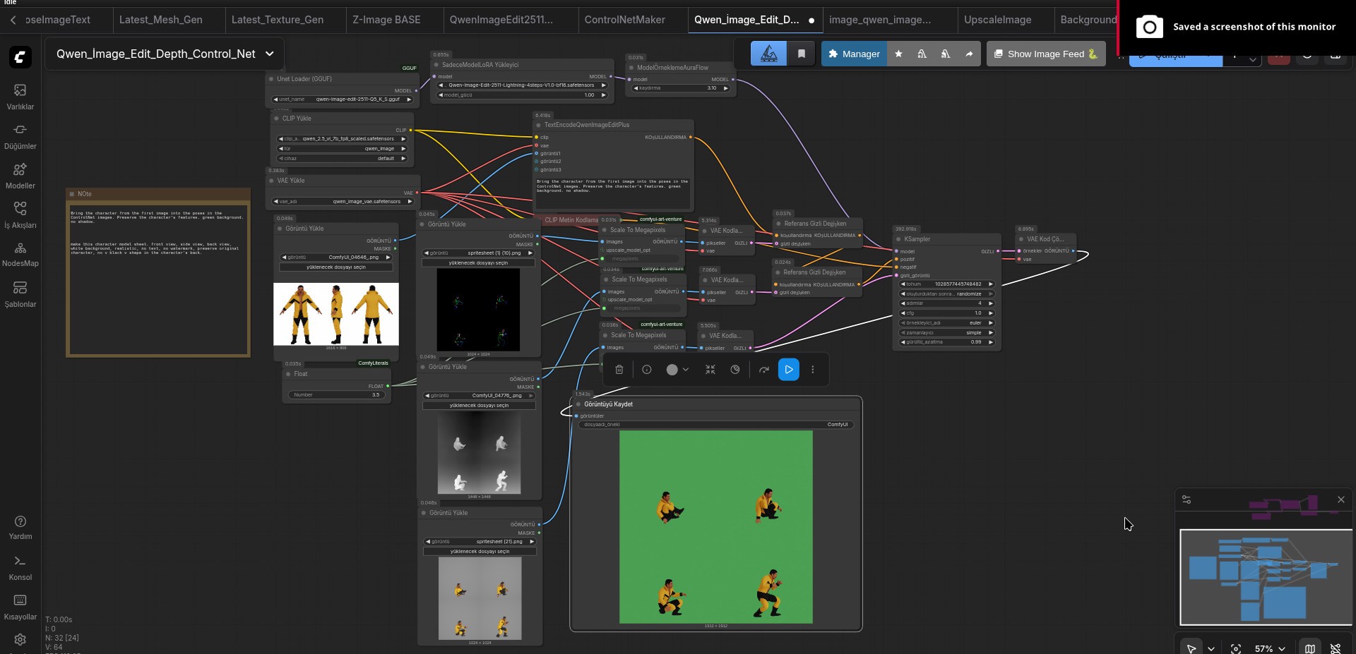 We need ControlNet images. For this, you can use my workflow or create your own. In the end, you will obtain three sprite sheets. One is generated from the 3D model. One is the depth map. The other one will be the Pose ControlNet.